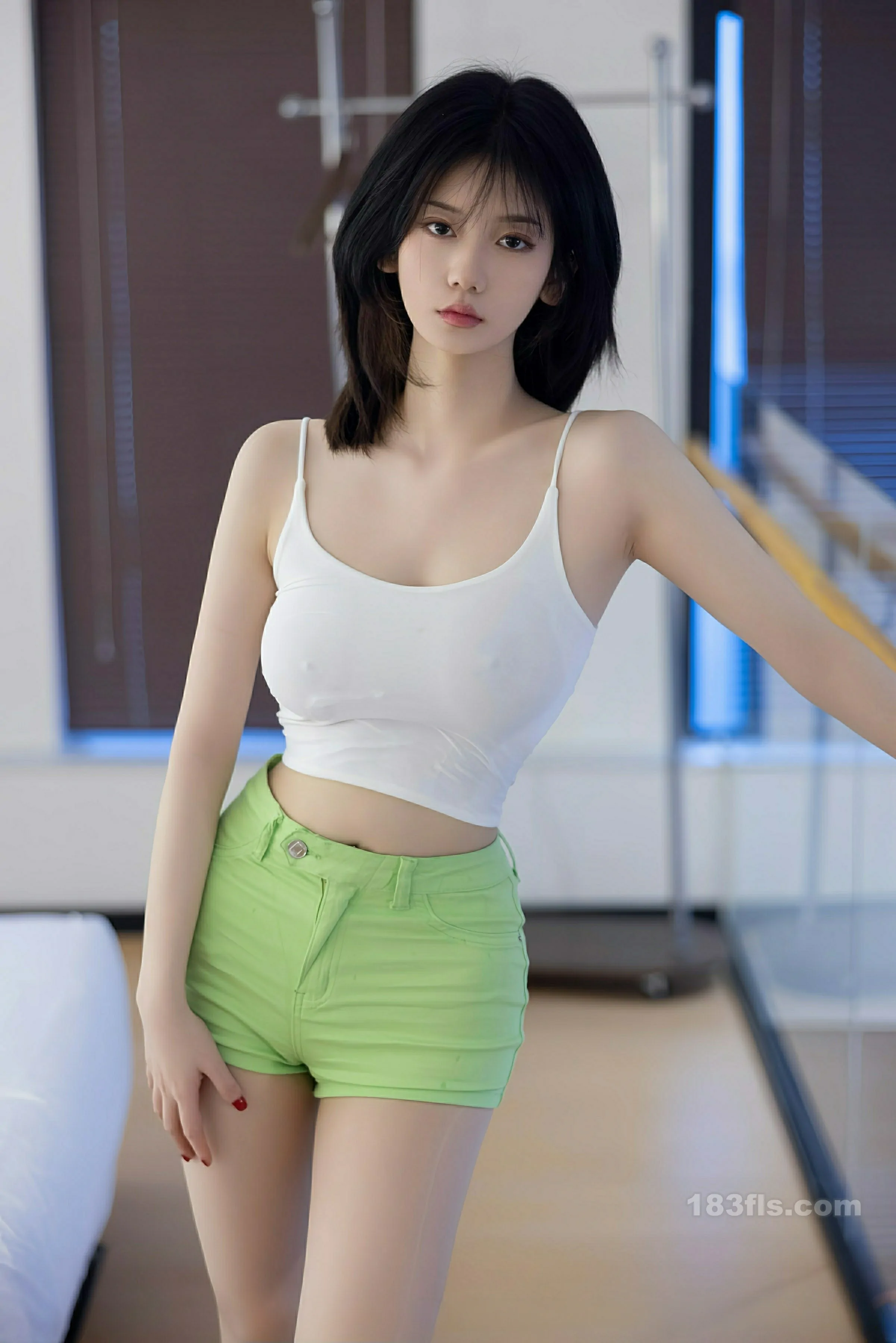 新人@凌七七 性感写真发布,性感浅绿色连衣短裤搭配性感灰色丝袜,曼妙苗条身姿明艳动人,全套写真共85P足量放送,希望大家喜欢和多多支持新人。